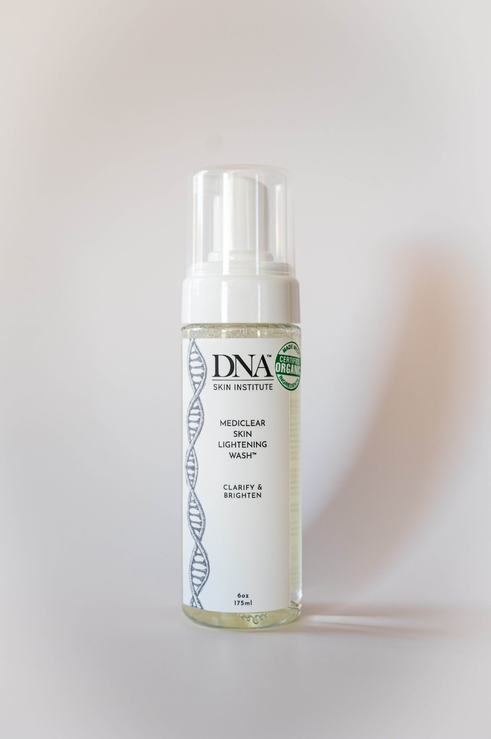 DNA Skincare MediClear Skin Lightening Wash 100% natural foaming cleanser is the first step to lighter and brighter skin. Lightening is promoted with the combination of herbs, essential oils, anti-oxidants and phyto-chemicals.