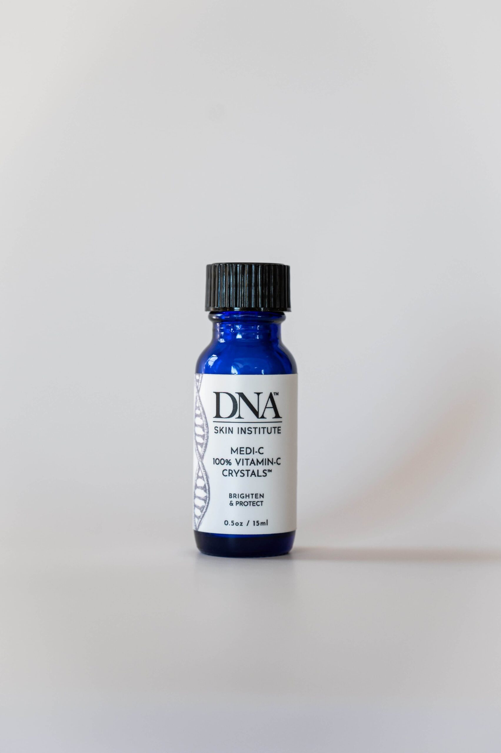 This powerful accelerator boosts results and contributes anti-inflammatory and anti-oxidant benefits. When combined with one of the MediClear™ Line’s medical strength clarifiers or DNA’s anti-aging treatments Medi-C™ will promote a polished, even skin tone, increase collagen production and, as reported by the FDA, help rebuild healthy skin tissue.