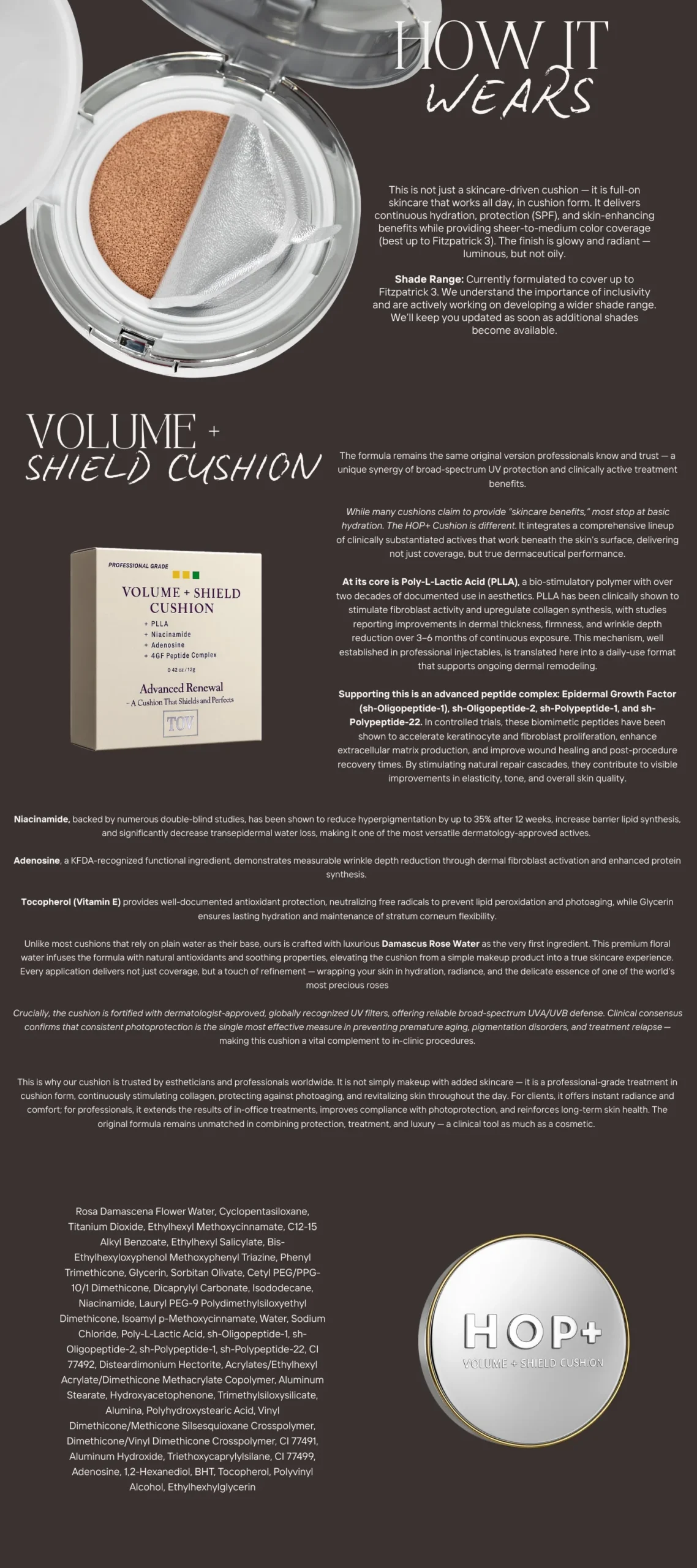Professionally inspired by Sculplla H2 Filler Facial treatment, Volume + Shield Cushion helps to minimize all visible signs of aging while protecting against both harmful UVA and UVB rays.
